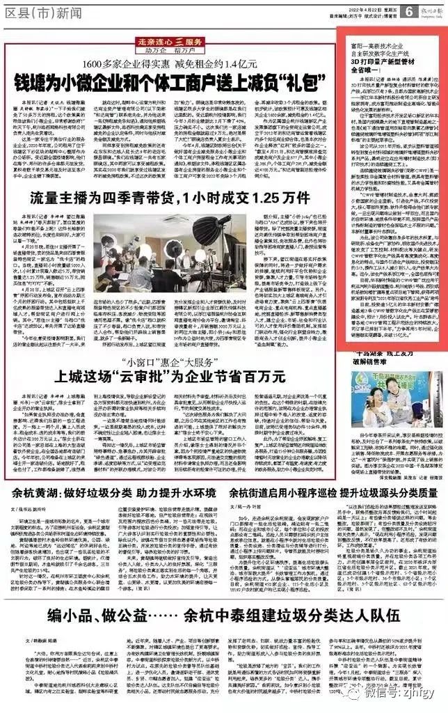 4月22日,杭州日?qǐng)?bào)以“富陽一高新技術(shù)企業(yè) 自主研發(fā)數(shù)字化生產(chǎn)線”為題,報(bào)道我公司智能化、數(shù)字化、高端化的連續(xù)纏繞玻璃鋼夾砂管(簡(jiǎn)稱CWFP)3D打印技術(shù)生產(chǎn)線。